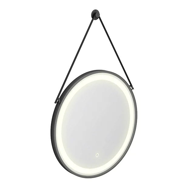 The contemporary Arezzo large round matt black bathroom mirror features a smart touch button on the screen surface for LED lighting and a de-mist pad which is designed to prevent the mirror from fogging.