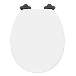 Toreno High Gloss White MDF Bottom Fixing Toilet Seat Matt Black Hinges