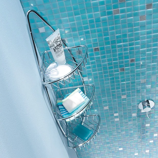 This practical and stylish Solo Corner Triple Wire Basket allows easy storage for toiletries, shampoos and sponges and keeps them close to hand in the shower. The 3 tier design gives plenty of storage space and fits conveniently into the corner. This strong and durable accessory is crafted from solid brass and finished to a polished chrome effect.